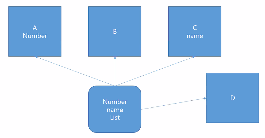 A,B,C 어디에서나 접근이 가능하도록 하는 클래스를 하나 만들어서 List라는 객체를 넣어놓습니다.