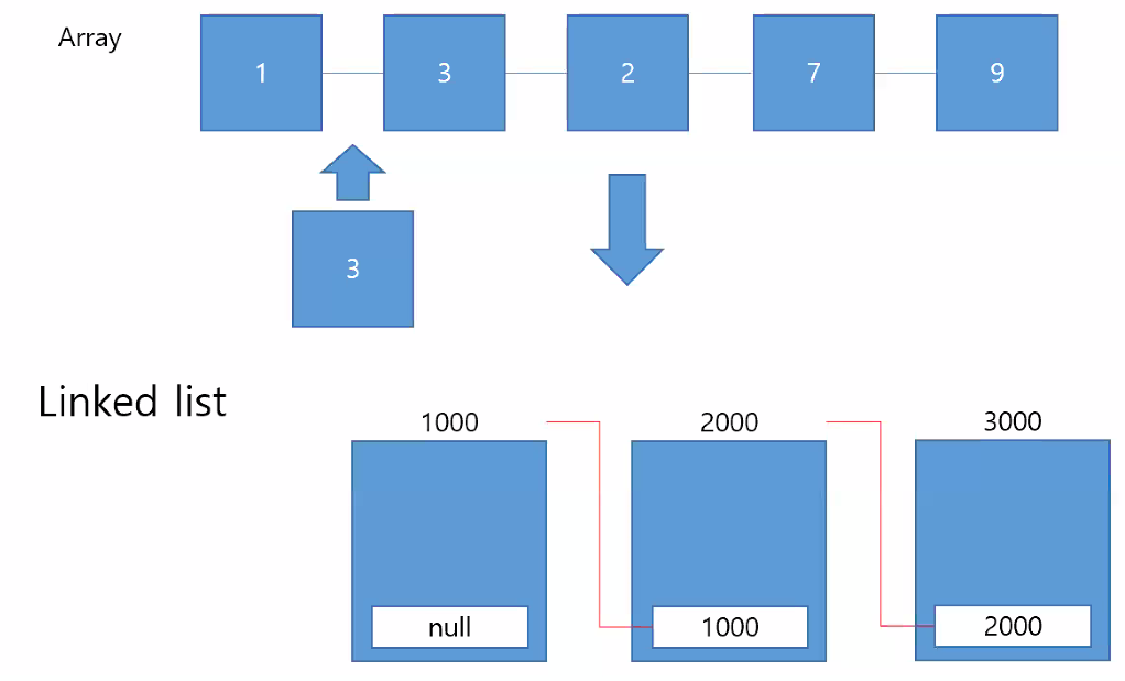 LinkedList(CRUD) : 실시간 추가, 삭제 , 선형구조
